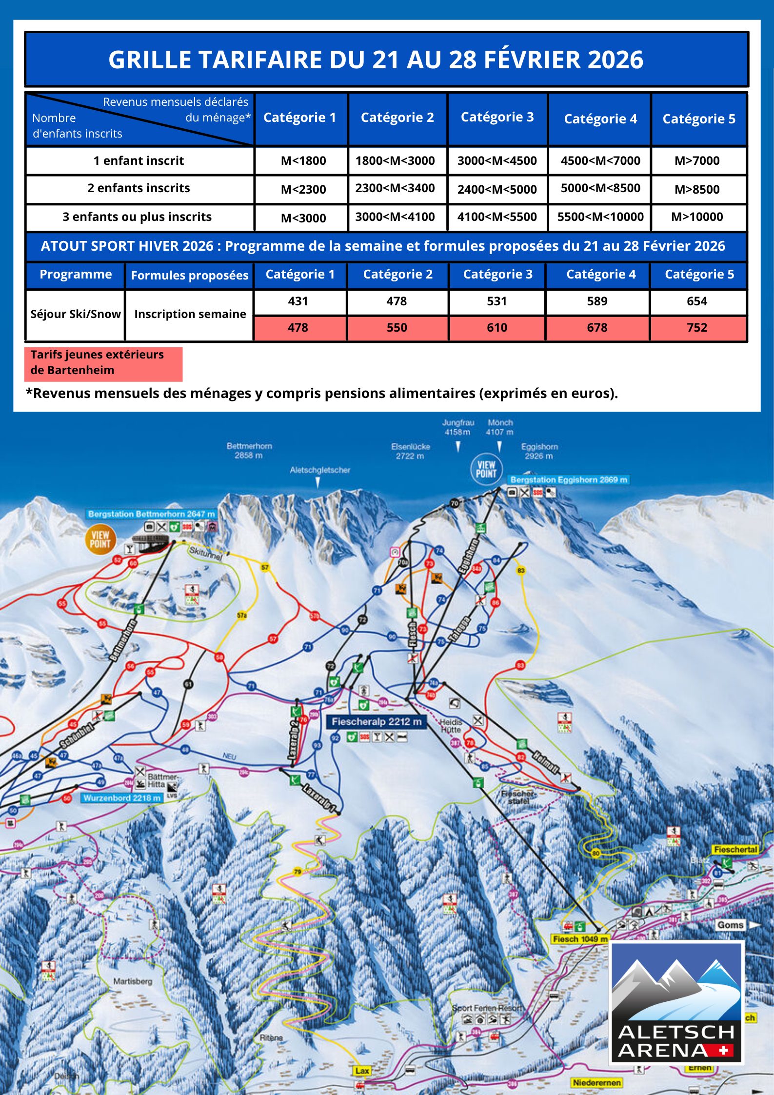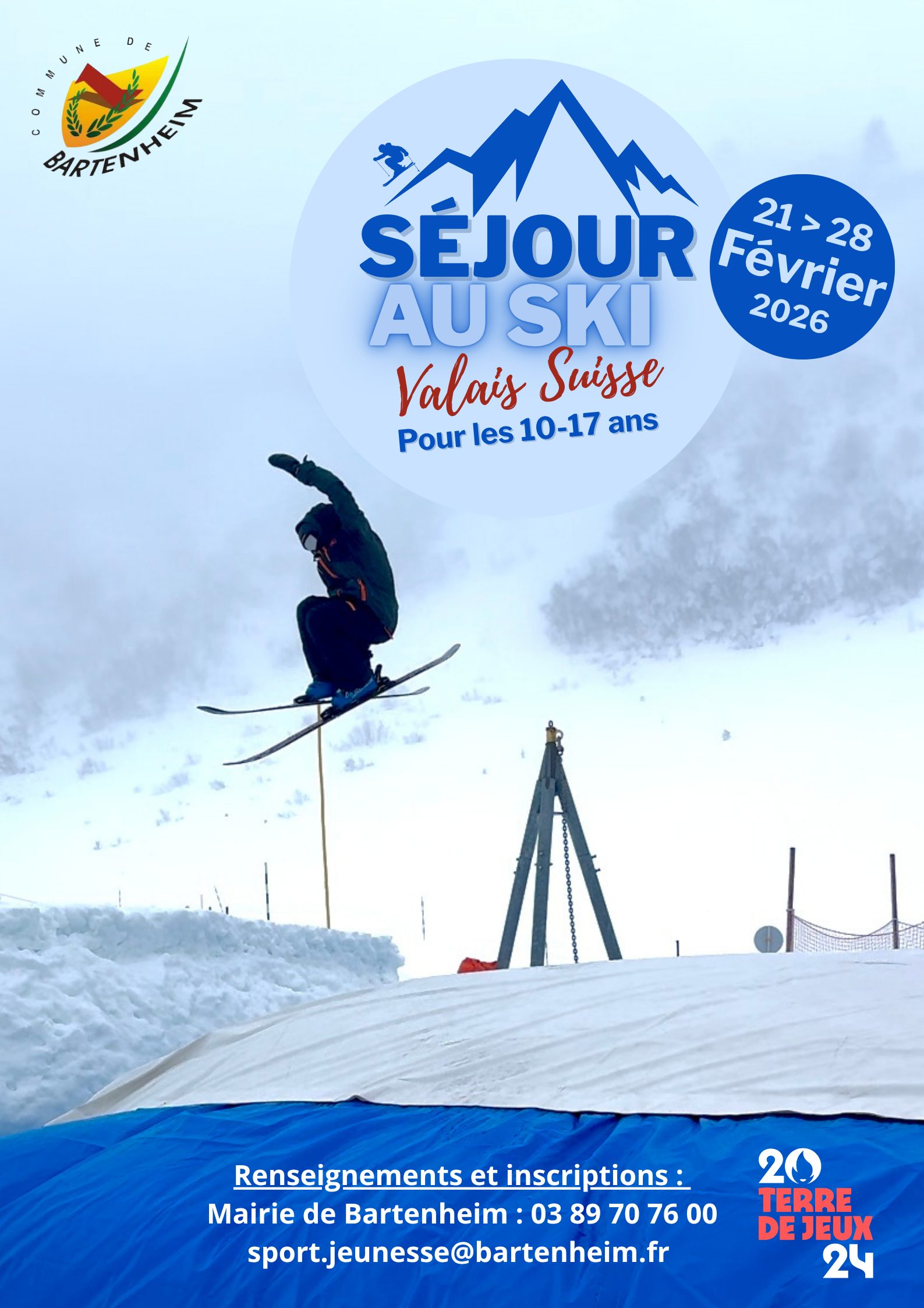 Le service des sports et de la jeunesse de Bartenheim organise son traditionnel séjour de ski dans les Alpes suisses du 21 au 28 février 2026.